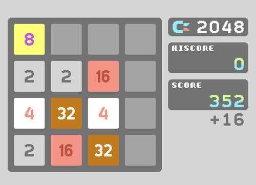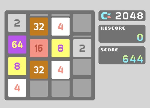 Slide the tiles around the board and collide identical numbers in order to climb up the power-of-two series until you achieve 2048. Each turn a new '2' or '4' stone will appear on the 4x4 grid, meaning that you'll have to choose your moves carefully. Every time you collide two or more tiles, your score increases by their merged value.